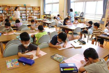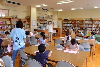 学校司書の先生に「だるまちゃんとかみなりちゃん」を読んでもらいました。