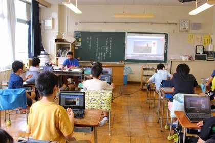 前に出て写真を紹介しながら発表したり、スライドを共有しながら発表しています。