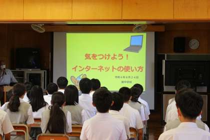 期末考査を終えた中学部。給食の後は、地域連携室で「セーフティ教室」です。高尾警察署の方に「気をつけよう インターネットの使い方」と題して御講演いただきました。ありがとうございました。