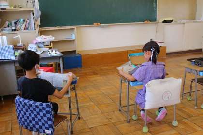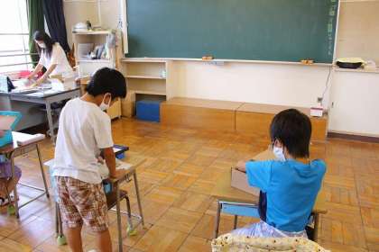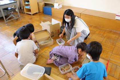 「カイコを育てよう」カイコの幼虫を観察しています。