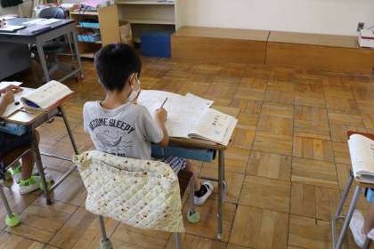 『クラスの「生き物ブック」を作ろう』昨日に引き続き、組み立て表をもとに、説明文を書いています。