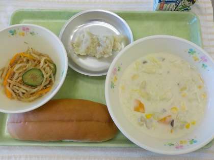 今日の献立:(セルフ)マッシュサンド、クリームシチュー、雑魚サラダ