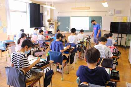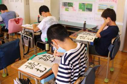 書写の学習です。文字の大きさ(漢字は大きく、仮名は小さく)がポイントです。