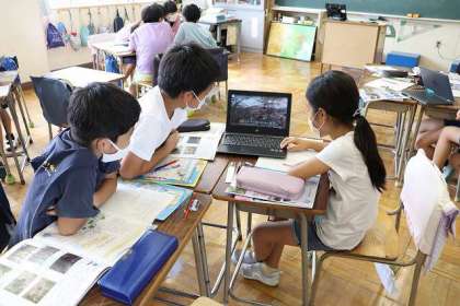 「水はどこから」クロムブックを使って映像を見ながら学習しています。