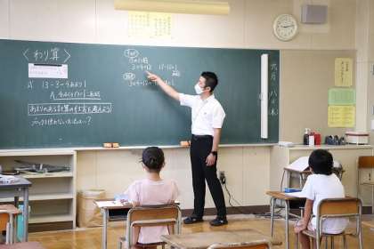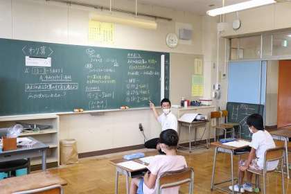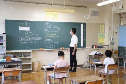こちらのグループでは、お互いの考えを書いたノートを交換し、計算の仕方をたしかめました。最後に練習問題を解きました。最後まで集中して学習している姿が見られ、とても立派でした。