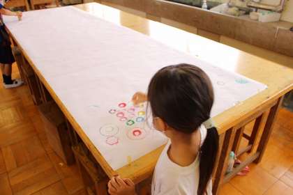 「ぺったんコロコロ」いろいろな材料を使ってスタンプを押します。