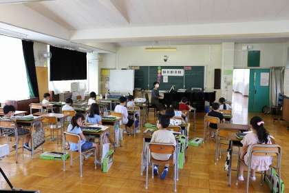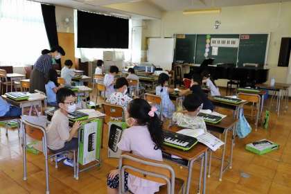 「ど(・)れ(・)み(・)と なかよく なろう」キーボードの「どれみふぁそ」の 場所を覚えましょう。これからペアをつくり練習していきます。