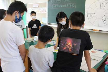 「色の変化の面白さを感じ取る」時間です。グラデーションの表し方を振り返っています。