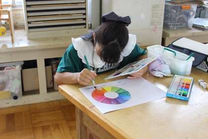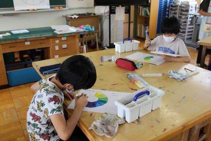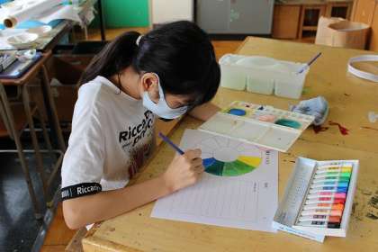 絵の具と水の量を調整しながら「色の変化の面白さを」実感しています。