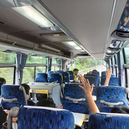 バスの中では、バスレクを楽しんでいます(^o^)
