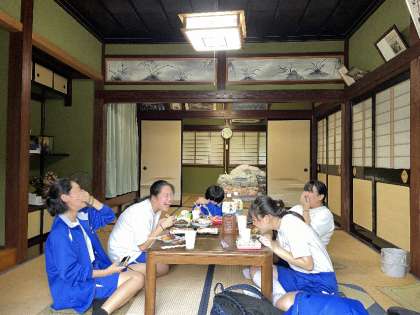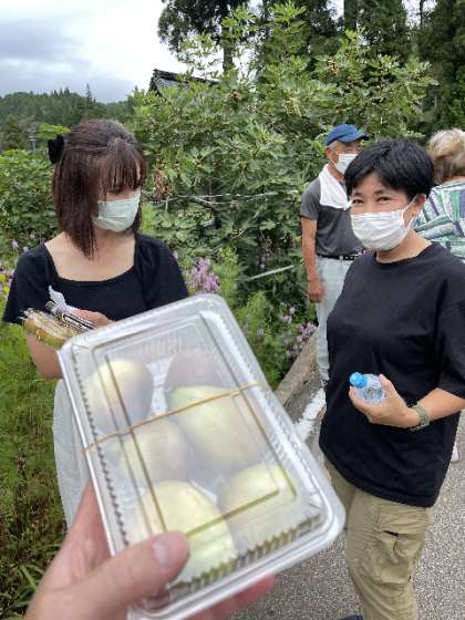 自分たちで作ったおはぎを早速食す。私たちもお裾分けと、庭になっているイチヂクをたくさんいただきました。