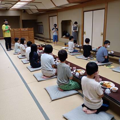 夕ごはん、おいしくいただきました! ごはんを何杯もおかわりしていた子もいました。