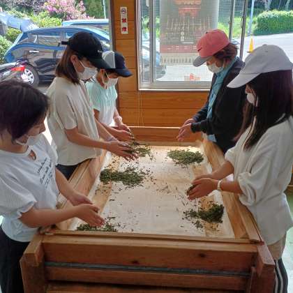 日本平お茶会館。茶摘み体験や、茶もみ体験をしました。お茶の香りに癒されます(^o^)