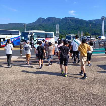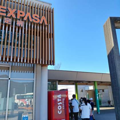 足柄サービスエリアでのトイレ休憩を終えました。さぁ、最終目的地の学校を目指して!