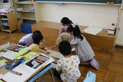 それぞれの付箋から内容が似た者同士を集めて、グループ名をつけています。写真のタイトルもつけました。しっかりと学習に取り組む姿が素晴らしかったです。