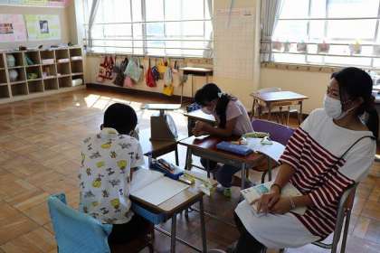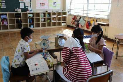 『重さをはかろう』秤の使い方を学習しました。針をゼロに合わせ、正面から目盛りを見ていきます。