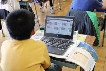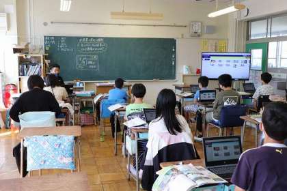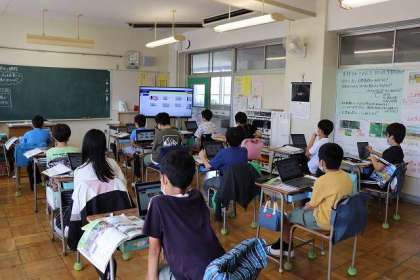 水産業の変化と課題の学習です。「昔と比べてどのような課題があるのか?」個々の考えをクロムブックを使って共有しています。