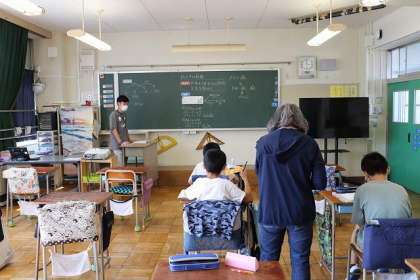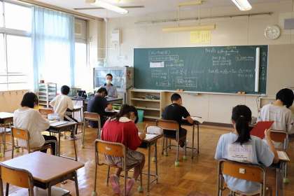 「比とその利用」の学習です。ある量をきまった比に分けて考えることが難しいようです。「あっ、そうか」とのひらめきを待ちます。