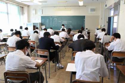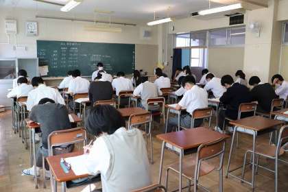 本日は「復習確認テストの日」です。国語・数学・英語・社会、そして午後に理科のテストです。数学テスト時間の様子です。