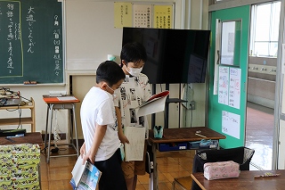 「大造じいさんとガン」の学習です。物語の山場(クライマックス)を考えて、友達と意見交流しています。