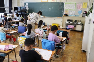 『かたかな あつまれ』点や画の書き方、文字の形に注意しながら、丁寧に書いていく練習です。