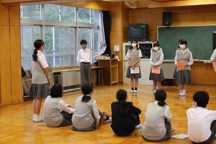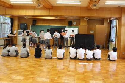 本校舎「地域連携室」にて合唱祭に向けての練習です。聴いた感想やアドバイスをもらっています。