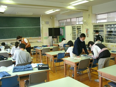 エコバックの制作を進めています。みんなミシンを上手に使うことができています!
