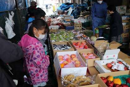 野菜・くだものコーナーを通っています。