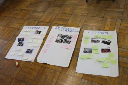 「社会科見学のまとめ」昨日、見学してわかったことを付箋に書きました。次々と分かったことが出てきました。