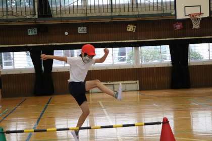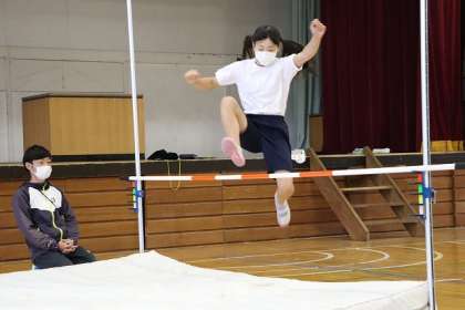 「走り高跳び」の学習です。2つのグループに分かれて練習しています。
