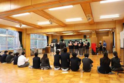地域連携室で「学年練習」です。クラス別に歌っています。さすが、3年生です。日々向上しています。