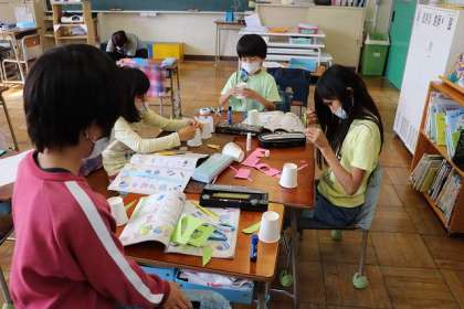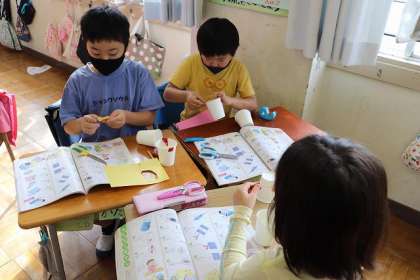 『うごく おもちゃ』づくりです。動くおもちゃを自分でつくり、遊びます。