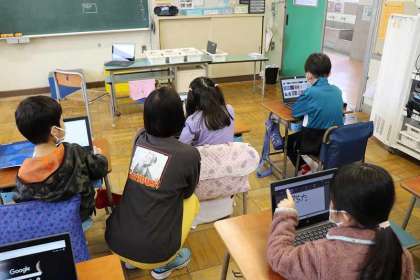 クロムブックを使っての「カード作成」を行っています。すごいです!