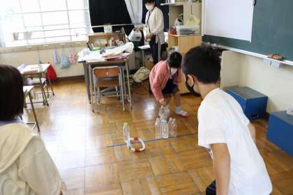 『うごく うごく わたしのおもちゃ』つくったおもちゃで遊んでいます。