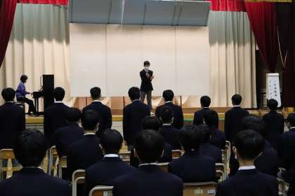 ここから「コンクールの部」がスタートします。中学部1年生が「課題曲 Forever」を歌っています。