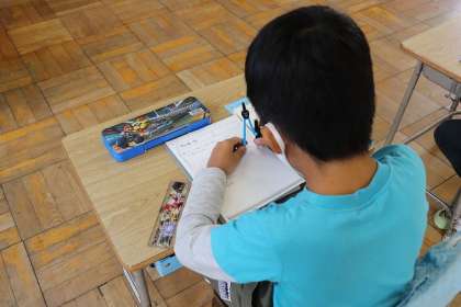 コンパスを使って円をかく学習です。半径や直径に着目して・・