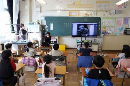 『生きものを調べよう』クロムブックに写真や言葉を書いてまとめました。写真は「ゆきひょう」について発表しています。赤ちゃんの写真に「かわいい!」と反応していました。