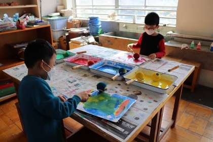 『ローラーコロコロ』ローラー遊びを楽しみました。終わったら、ねんど遊びです。