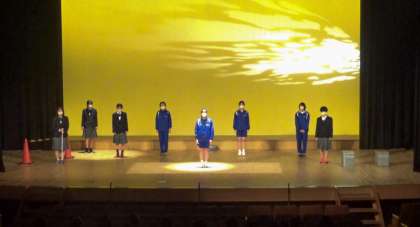 土曜日の八王子市芸能祭に参加した結果、部員たちの演技と努力に対し表彰状が授与されました。本日の朝会で全校児童生徒の前で披露しました。
