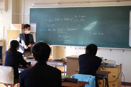 2つのクラスに分かれて「How long 〜」の英文を練習しています。