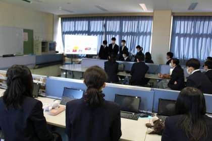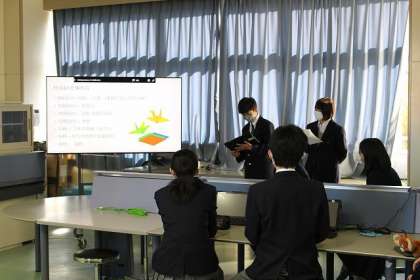 「職業体験」をスライドにまとめました。いよいよ発表する時がやってきました。消防車について・保育園での職場体験を報告しています。