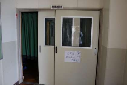 明日の『館小まつり』に向けて準備を進めています。子ども声はしますが、地域連携室のなかは真っ暗です。