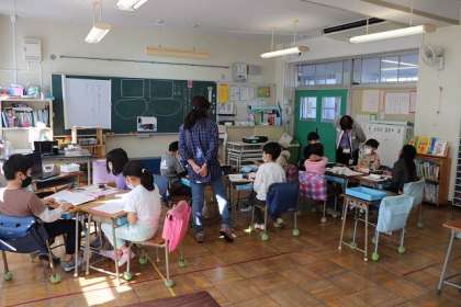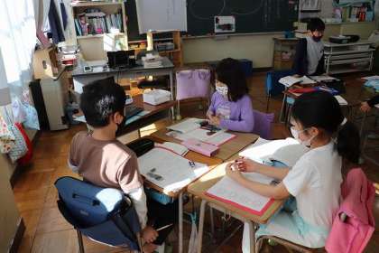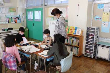 『ないた赤おに』赤おにと青おにがけんかしているときの気持ちを考えます。自分の考えを交流している様子です。
