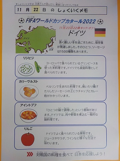 明日は日本にとって、このワールドカップの初戦となるドイツ戦。ドイツ料理を食べて、明日は日本を応援しましょう!!(^O^)