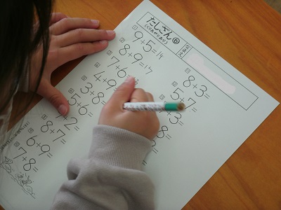 授業の始めには復習で足し算にも取り組んでいますが、みんな計算のスピードが速くなってきました。いいぞいいぞ!!(^^)/