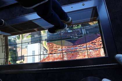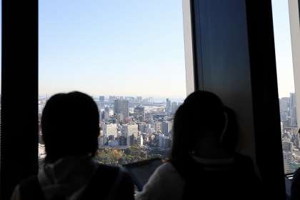 ガイドの方の説明で外の景色を眺めています。高さを感じる場所がありました。