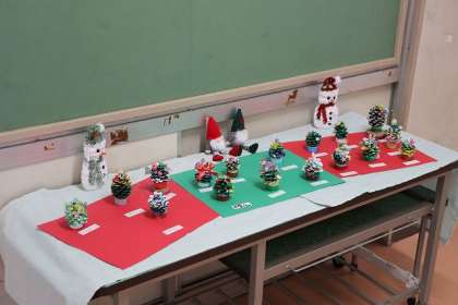 ツリーをつくりました。すてきな作品が教室前に展示されています。