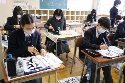 個々の生徒が考えた「漢字」を練習しています。清書して提出です。