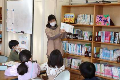 学校司書の先生による「本の読み聞かせ」です。とても楽しみな時間です。