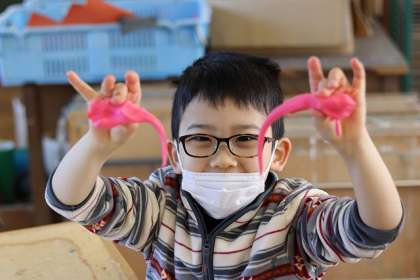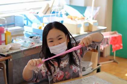 『フルーツパフェ』粘土で、果物や食べ物を作っていきます。